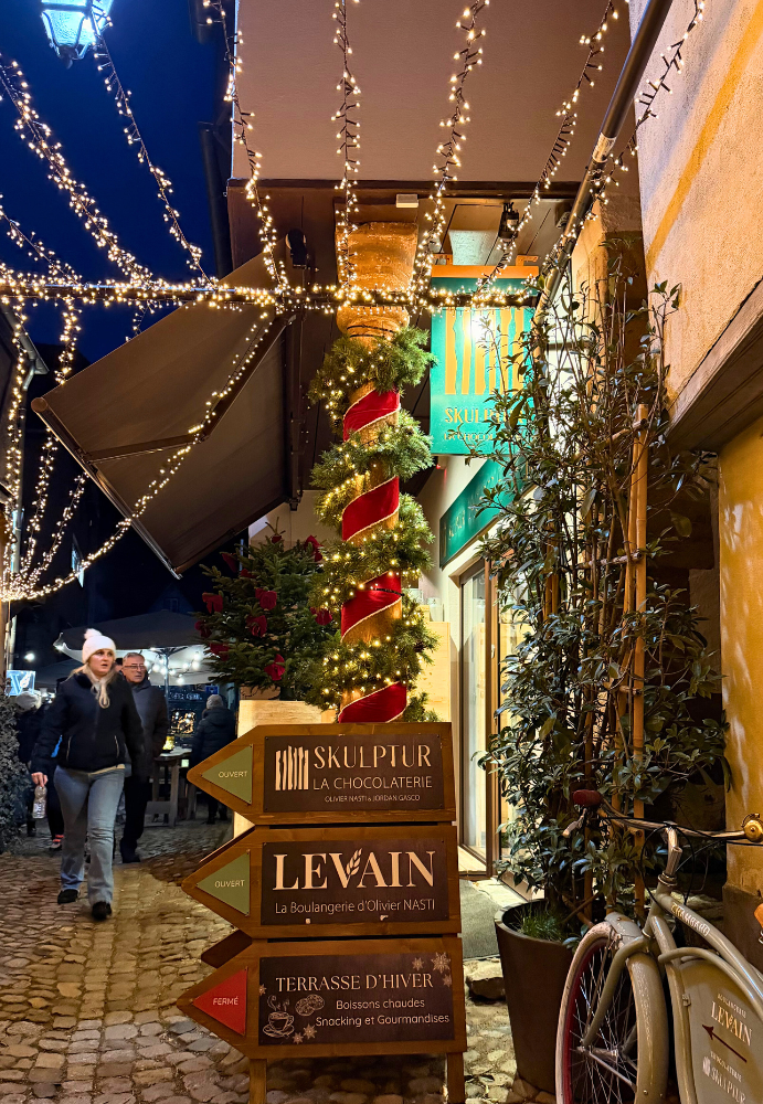 Pourquoi pas une petite virée à Kaysersberg pour découvrir la ville illuminée et passer voir quelques points d’intérêt comme : la verrerie de Kaysersberg (atelier et boutique) et la Ruelle Gourmande du Chambard (avec la chocolaterie Skulptur et la boulangerie Levain).